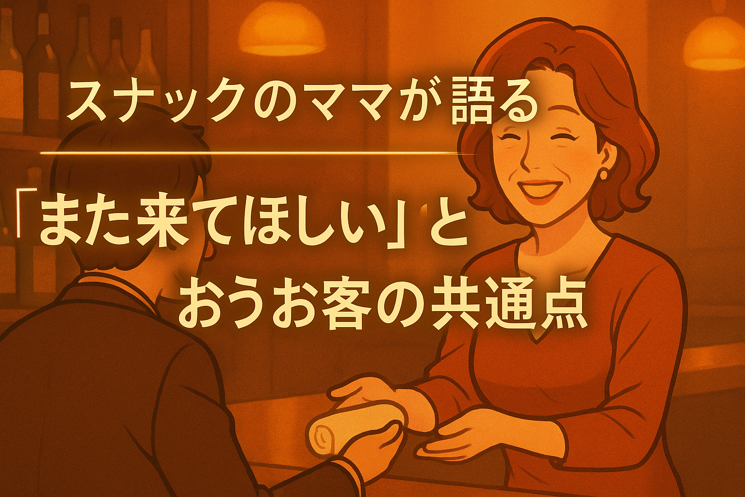 今回は、スナックのママたちが口をそろえて語る「また来てほしい」と思うお客の共通点を、営業マンの視点から整理してみました。
