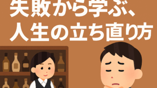 人生訓 常連が語ってくれた失敗から学ぶ、人生の立ち直り方 常連が語ってくれた失敗から学ぶ、人生の立ち直り方スナックに通っていると、昇進の喜びから大きな挫折まで、いろんな人生を耳にします。その中で特に印象的なのは、常連さんたちが「失敗をどう受け止め、どう立ち直ったか」という話です。私自身、営業で大き... 2025.10.08 人生訓哲学