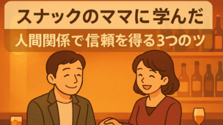人間関係 営業でも人間関係でも通用する!スナック流・信頼を得る3つのコツ スナック歴25年の実体験から導いた「信頼を得る3つのコツ」。聞く・合わせる・約束を守る——営業でも効く具体手順と会話フレーズを紹介。 2025.10.08 人間関係